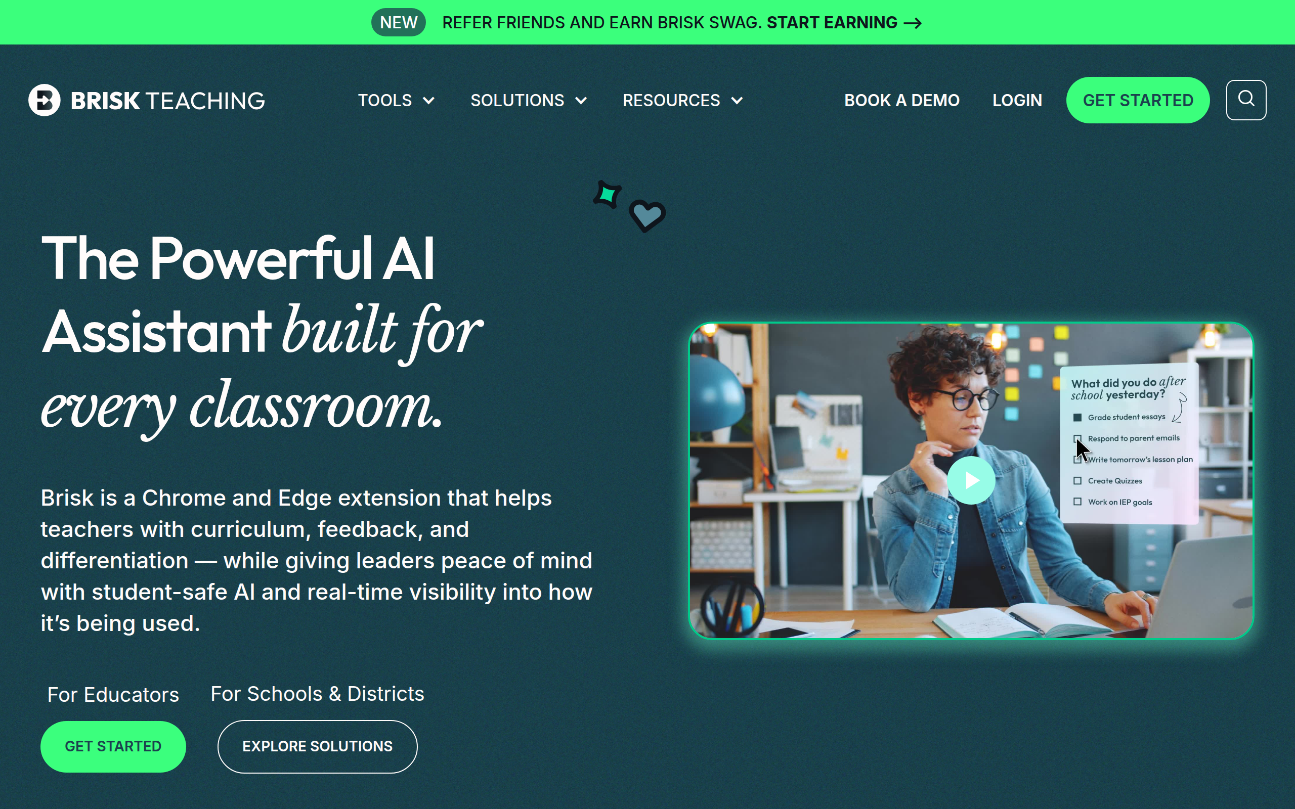 Brisk Teaching is an AI-powered Chrome and Edge extension designed to significantly reduce teacher workload. It provides educators with a suite of tools to automate administrative tasks and enhance instructional quality.