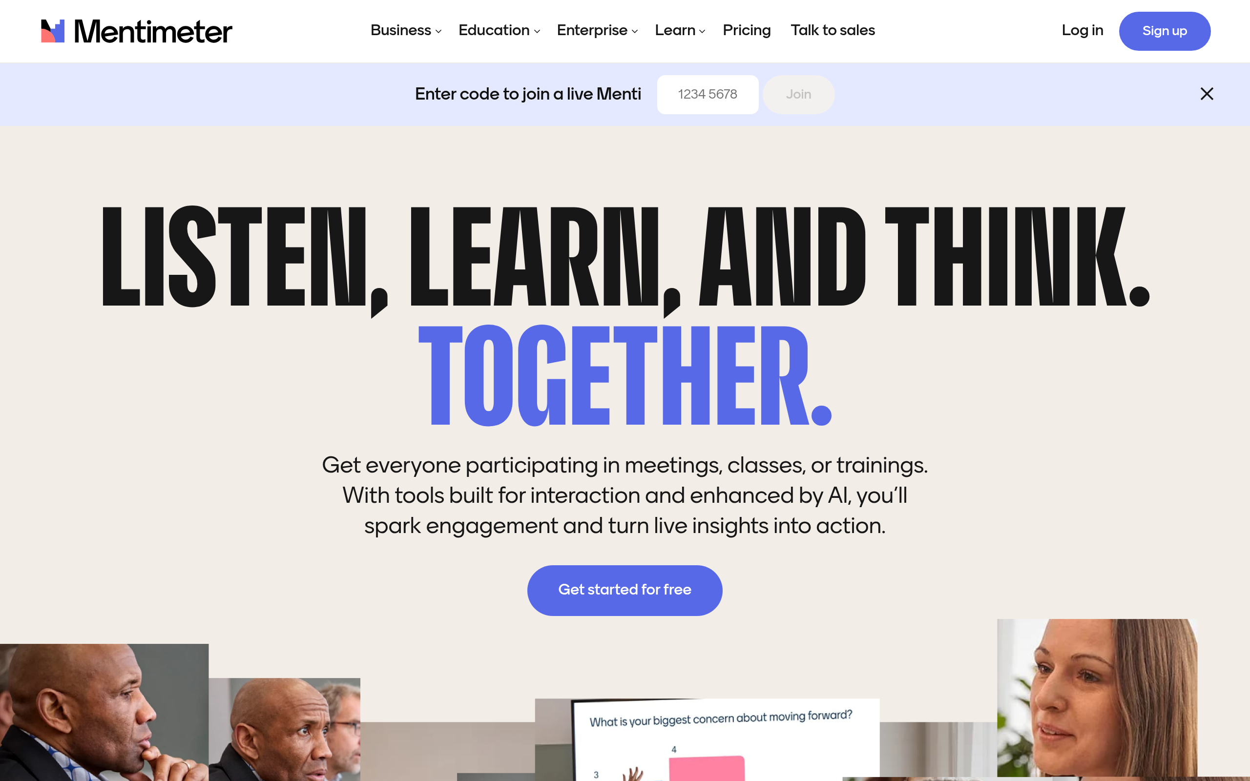 Participants can easily join a Mentimeter session using a unique code, link, or QR code via any mobile device, without requiring account creation. Responses are displayed instantly, enabling dynamic discussions and immediate feedback for both business and educational settings.