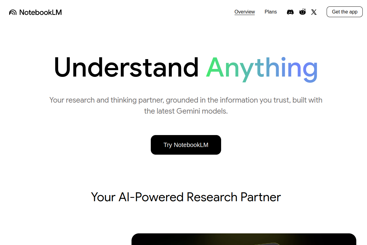 Ans. NotebookLM is an AI-powered research assistant from Google that helps you understand and organize your documents. You upload various sources, and it can summarize content, answer questions, and generate insights directly from your materials, making it ideal for academic research and literature reviews.